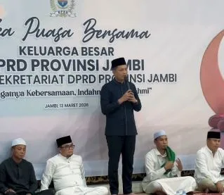 “Tidak terasa puasa sudah berjalan sekitar 23 hari. Mungkin sekitar delapan hari lagi kita akan menyambut Idul Fitri. Atas nama pimpinan dan seluruh anggota DPRD Provinsi Jambi, kami menyampaikan permohonan maaf yang tulus lahir dan batin,” ujarnya.