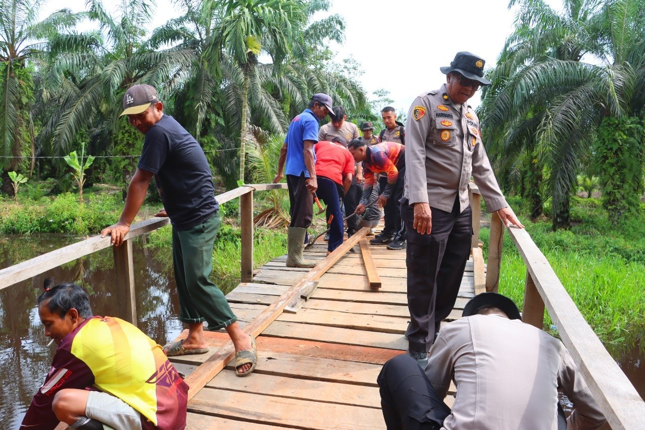 Kapolres Tanjab Timur Akbp M. Kuswicaksono, yang berada di lapangan, menegaskan komitmen jajaran kepolisian untuk memulihkan akses masyarakat “sesegera mungkin. “Kami bersama-sama dengan masyarakat melaksanakan perbaikan jembatan yang kondisinya sangat memperihatinkan, dimana terdapat lantai jembatan perlahan mulai lapuk. bolong dibeberapa bagian membuat setiap langkah menjadi was-was. Dimana dibawahnya aliran sungai yang dikenal banyak buaya, menjadi ancaman tersendiri, terutama bagi anak-anak sekolah yang melintasinya setiap hari.” ujarnya.