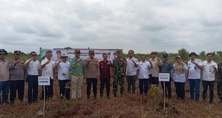 Hadir dalam kegiatan tersebut unsur Forkopimda, perwakilan organisasi perangkat daerah (OPD), camat, kepala desa, serta masyarakat setempat yang ikut berpartisipasi langsung menanam berbagai jenis pohon.