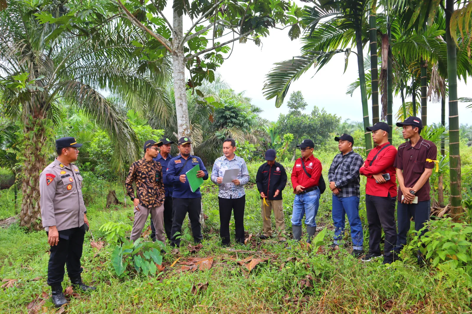 Eksekusi lahan oleh pihak Pengadilan Negeri Tanjab Timur dihadiri Kepala Seksi Survei dan Pemetaan (Badan Pertanahan Nasional) Buyung Kurniawan P. Wijaya, S.ST., Panitera Pengadilan Negeri Kab. Tanjab Timur Sdr. Reno Sapta Maiza, S.Si., S.H., M.H., Panitera Muda Perdata Pengadilan Negeri Kab. Tanjab Timur Sdr. Sigit Mustofa, S.H., Panitera Pengganti Pengadilan Negeri Kab. Tanjab Timur Sdr. Gustireza Nasfialesta, S.H.,M.H., Juru Sita Pengadilan Negeri Kab. Tanjab Timur Sdr. Wahyu Indra Purnama, A.Md., Lurah Kel. Talang Babat Sdr. Deni Suparman dan Pemohon Eksekusi berdasarkan keputusan inkrah yang di menangkan Sdr. E Kha Kiauw.