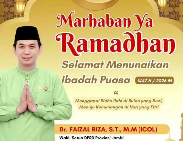 Infokabarkito.id – Wakil Ketua DPRD Provinsi Jambi, Dr. Faizal Riza, S.T., M.M. menyampaikan ucapan selamat menunaikan ibadah puasa Ramadan 1447 Hijriah/2026 Masehi kepada umat Muslim di Provinsi Jambi.
